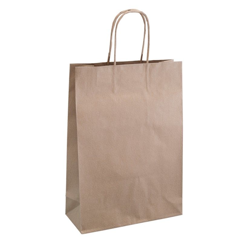 Torby papierowe z uchwytem płaskim wykonane w 100% z recyklingu z solidnego papieru kraft. Nadają się idealnie do zadrukowania pod indywidualną koncepcję. Dzięki temu fajnie posłużą nam jako nośna reklama.